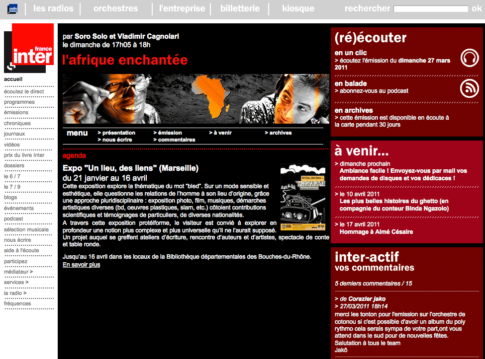 29 mars - France Inter Annonce sur le site de L'Afrique Enchantée