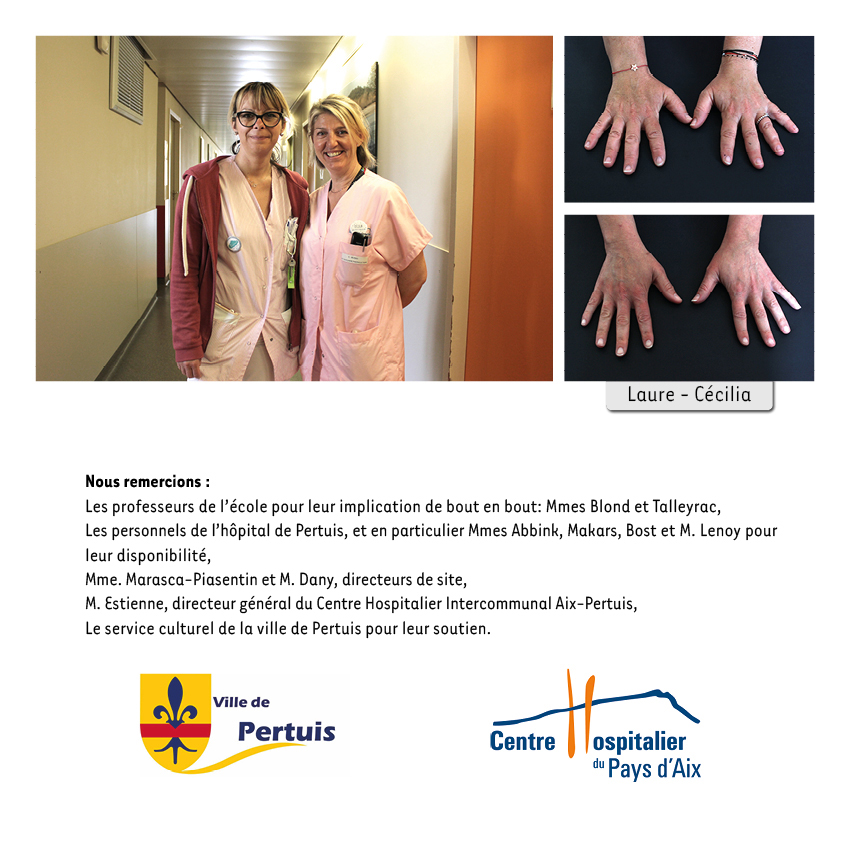 Dans le cadre d'un atelier mené au printemps 2019, les élèves de deux classes de CM1 de l'école J.-M. Marsily de Pertuis ont réalisé des portraits à l'Hôpital, aux services du Long Séjour et de la Maternité. Par petits groupes, munis d'enregistreurs sonores et d'appareils photo et vidéo, ils ont mené un travail documentaire: série de portraits de personnes et de leurs mains, entretiens sonores et séquences vidéo. Ces dernières ont été filmées à la manière des Frères Lumière, plans fixes appelés "Vues Lumières". Ils ont découvert un quotidien de vie étonnant, parfois drôle, souvent émouvant.